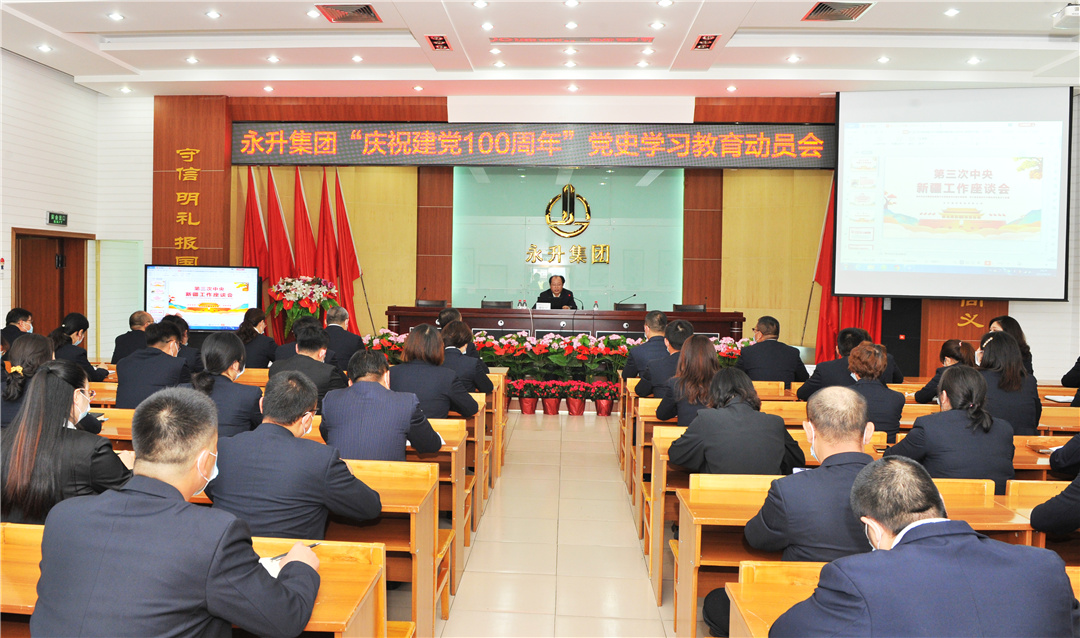 4月30日下午,集团公司在机关五楼会议室召开党史学习教育动员会,并举办了学党史培训班,公司70余名党员参加了会议。